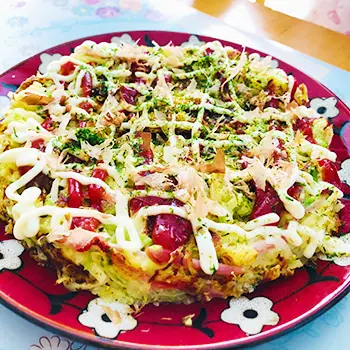 - ケチャップ、マヨネーズ、お好みで削り節や青のりをかける。